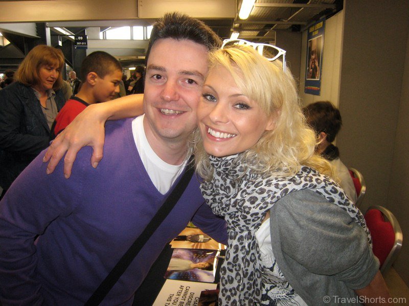 Then I went over to Myanna Buring who has been in Lesbian Vampire Killers and The Descent. She was really nice spending a lot of time chatting with everyone so the line took a bit of time to go down but I don’t mind that if the want to do something over than sign their name and move on, she seemed genuinely happy to be there and was happy to pose for a picture with me.