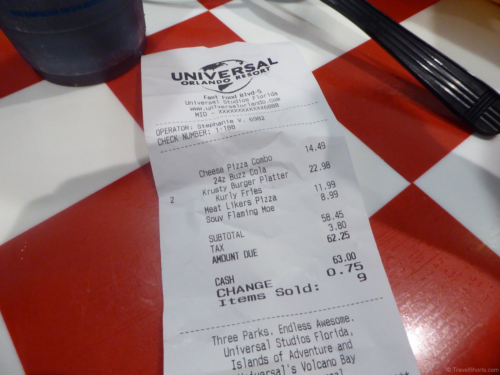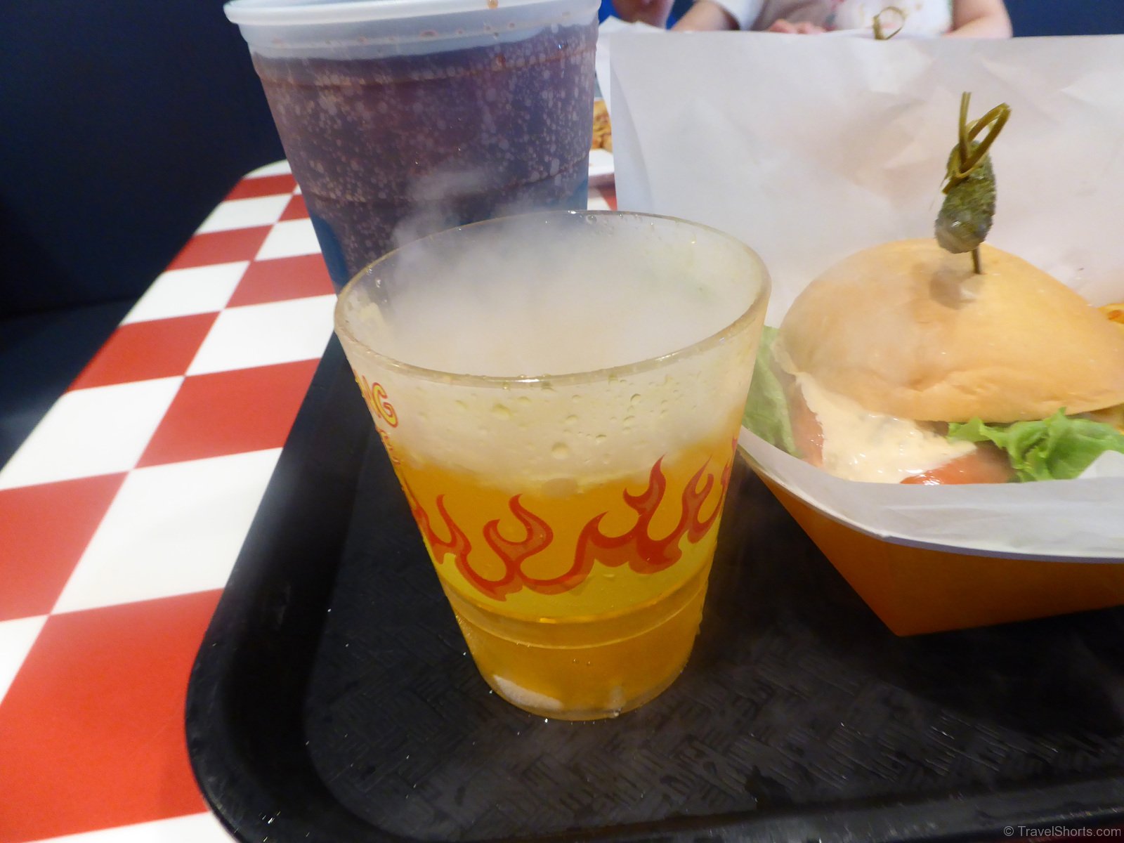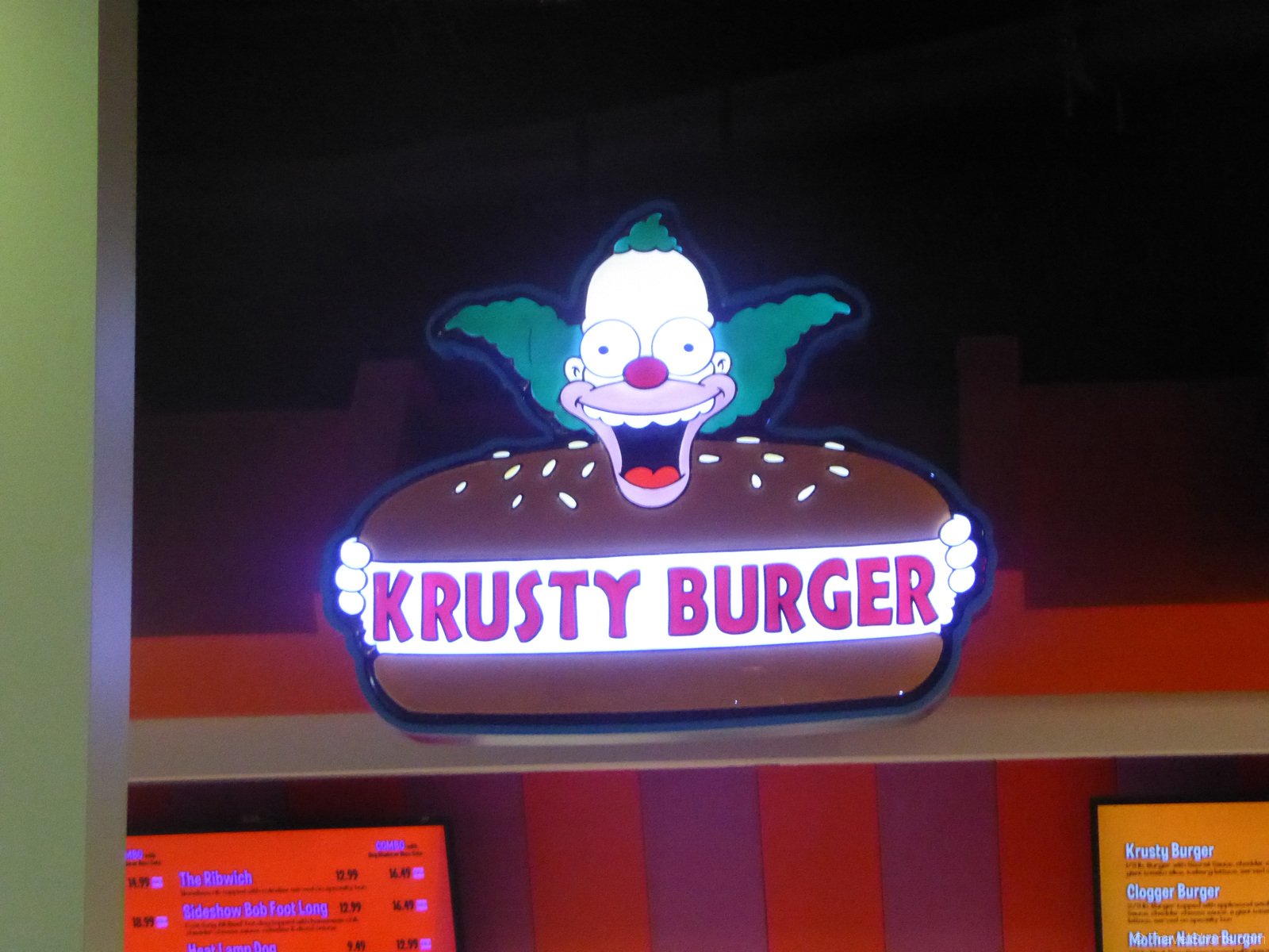 For lunch we went to Krusty Burger in the Simpsons themed restaurant in Springfield. We had a couple of cheeseburgers and some pizzas as well as a Flaming Moe from Moe’s Tavern.