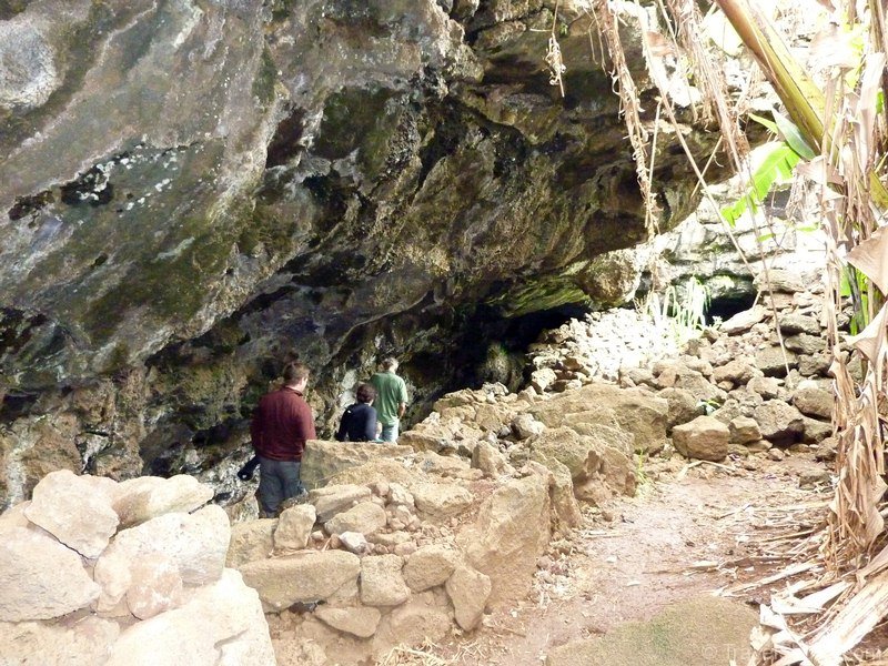 The final stop of today’s tour is Ana Te Pahu otherwise known as the banana cave due to the fact that banana trees grow up from the cave floor. The cave was used in ancient times as a shelter, defence and storage. The cave has openings at both ends and extends for almost 100 metres. At one end there is a large water pool that you can hear drops dripping into it.