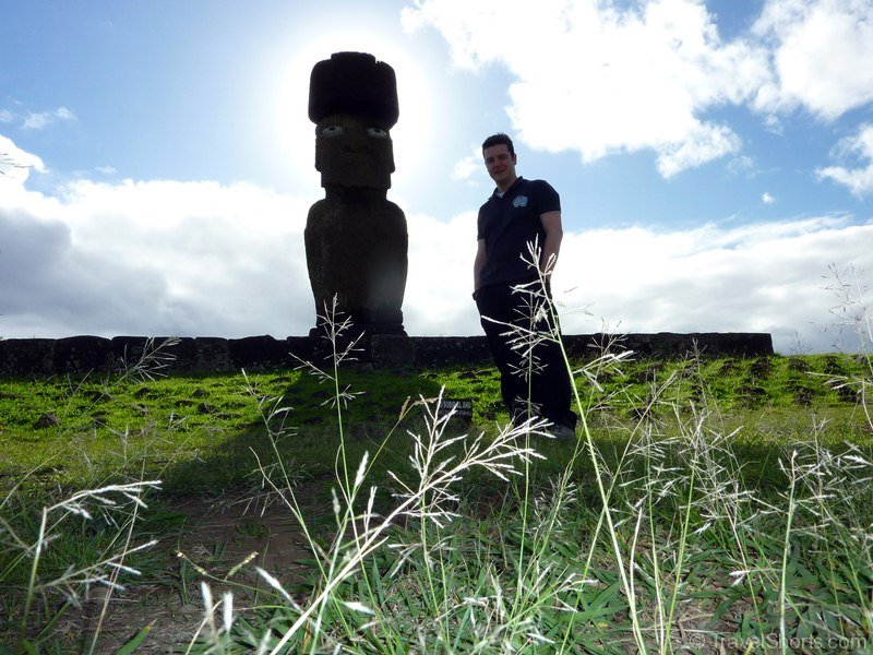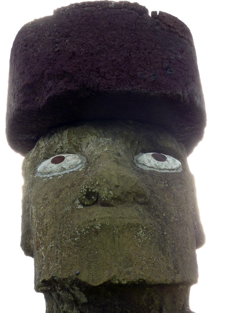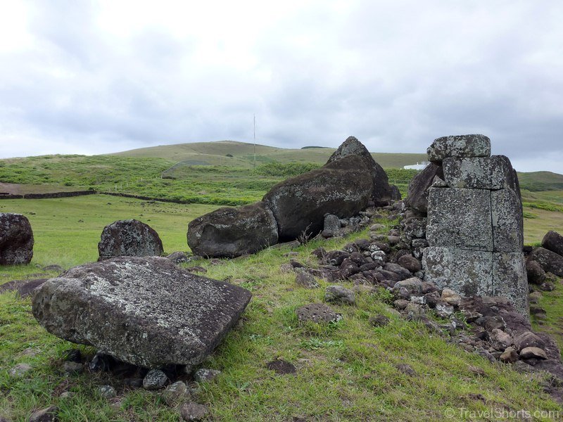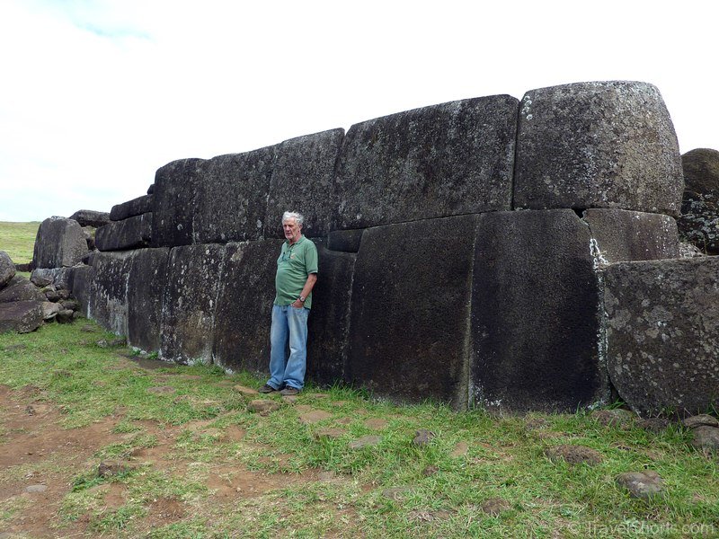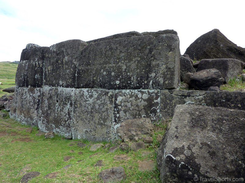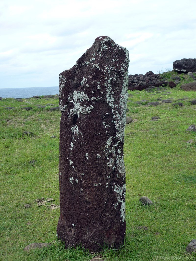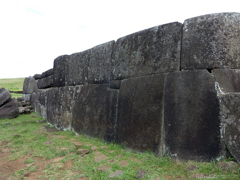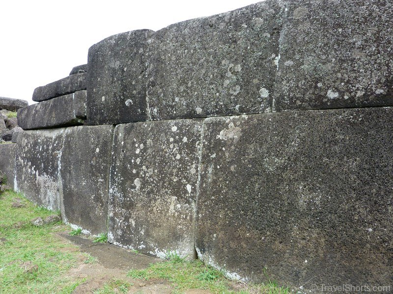 We then travel back down the road and reach Vinapu, Vinapu features a female moai statue although it is so badly weathered it is difficult to tell and some very fine stonework similar to that of the Inca’s. which has led some people to theorise that the Island was populated from the East rather than the West and Polynesia (although all the evidence points to the first inhabitants coming from the West). There is also a number of fallen moai and topknots here.