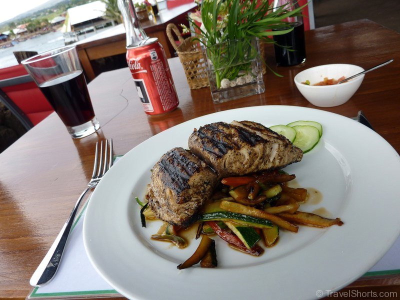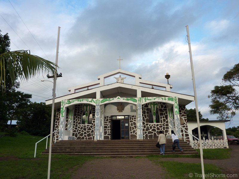 I go and explore the Hanga Roa coast again like I did last night and end up in the same areas with the moai with the eyes. I eventually go for dinner at Hakahonu Restaurant and have the local fish with stir fried vegetables and it was great. I then walk around the town for a bit visiting the artisan markets and the church before going for an ice cream which turned out to be huge, almost the size of my head.