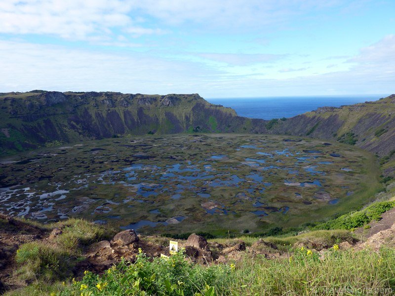 Next up was the volcanic caldera of Rano Kau. We stop off at an overlook that looks down into the crater lake, Bill explains that years ago this is where all the women used to go once a year and stay for a week or two to do their laundry. From this viewpoint you could see the full circle of the volcano.